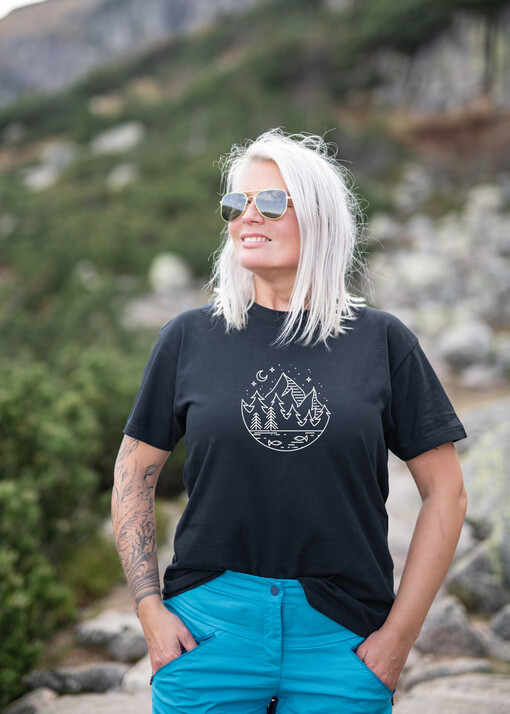 Wykonana z doskonałej jakości bawełny czarna damska bluza z kapturem i górami, to bluza którą pokochasz od pierwszego założenia. Czerń idealnie podkreśla urodę i pasuje na każdą porę roku - nie tylko na jesień. Damska bluza dresowa z kapturem mięciutka i super wygodna, idealna na górskie wycieczkiSama wybierasz swóją ulubioną bluze dresową z motywem gór. Jesteś niewymiarowa?