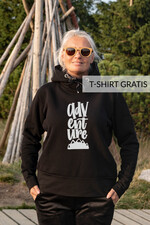 Koszulka Damska z górskim rytmem serca- w tym samym rozmiarze co zakupiona Bluza - Gratis KoszulkaPiękna i kobieca dzianinowa bluza dresowa damska w klasycznej czerni z motywem gór- idealnie nadaje się na prezent dla miłośników górskich wycieczek