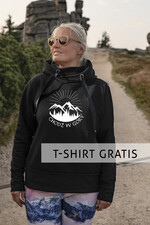 Wykonana z doskonałej jakości bawełny czarna damska bluza z kapturem i górami, to bluza którą pokochasz od pierwszego założenia. Czerń idealnie podkreśla urodę i pasuje na każdą porę roku - nie tylko na jesień. Damska bluza dresowa z kapturem mięciutka i super wygodna, idealna na górskie wycieczkiSama wybierasz swóją ulubioną bluze dresową z motywem gór. Jesteś niewymiarowa?