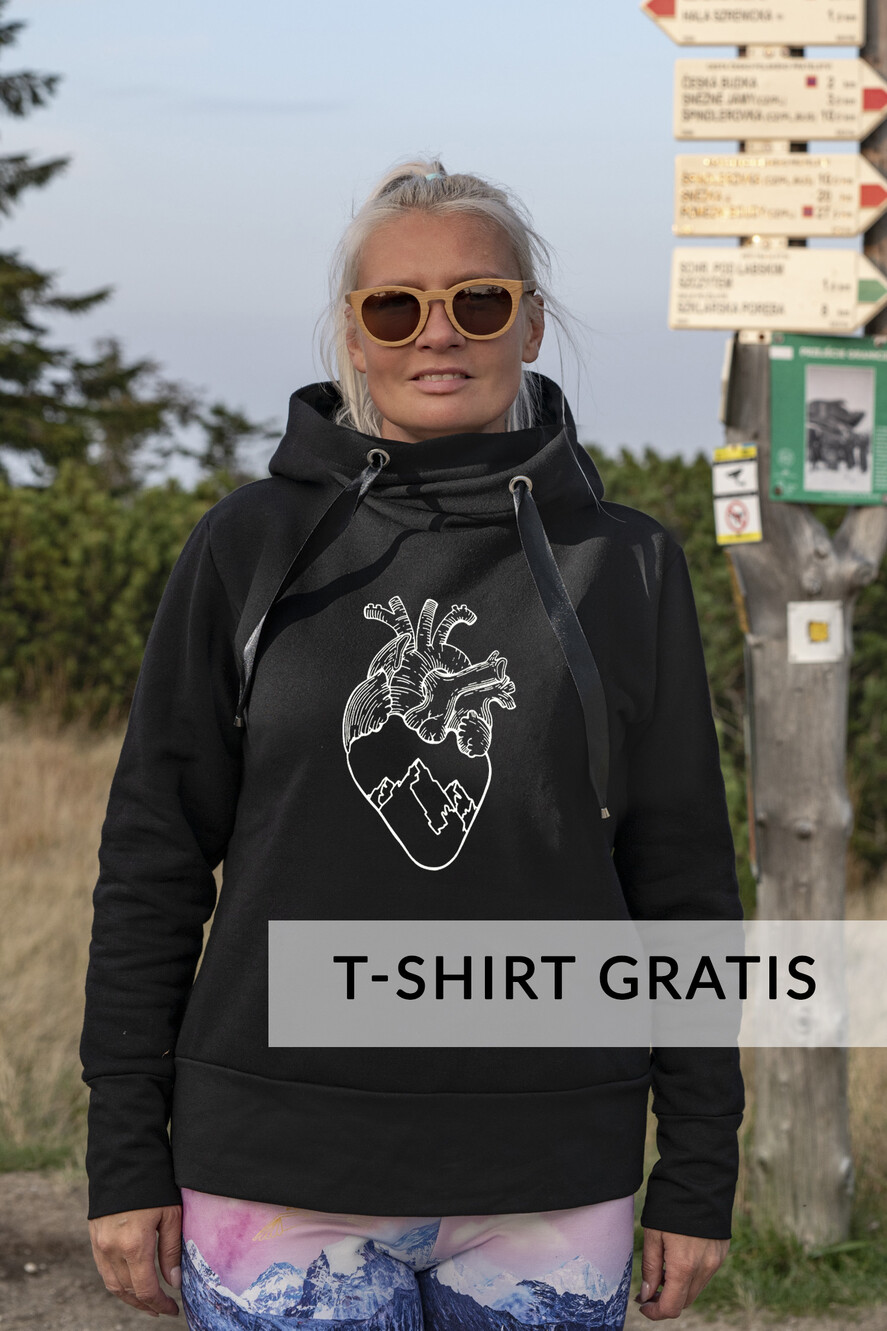 Do Tej Pięknej bluzy damskiej z kapturem - dołączamy T-shirt z górskim rytmem serca