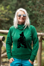 Wykonana z doskonałej jakości bawełny ciemnozielona damska bluza z kapturem i wilkiem, to bluza którą pokochasz od pierwszego założenia. Szmaragdowy idealnie podkreśla urodę i pasuje na każdą porę roku - nie tylko na jesień. Damska bluza dresowa z kapturem mięciutka i super wygodna, idealna na górskie wycieczki, jak i na spacery po mieście - to idealny pomysł na prezent dla dziewczynySama wybierasz swoją ulubioną bluzę dresową z motywem wilka. Jesteś niewymiarowa?