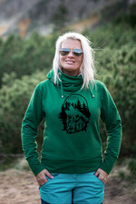 Wykonana z doskonałej jakości bawełny ciemnozielona damska bluza z kapturem i wilkiem, to bluza którą pokochasz od pierwszego założenia. Szmaragdowy idealnie podkreśla urodę i pasuje na każdą porę roku - nie tylko na jesień. Damska bluza dresowa z kapturem mięciutka i super wygodna, idealna na górskie wycieczki, jak i na spacery po mieście - to idealny pomysł na prezent dla dziewczynySama wybierasz swoją ulubioną bluzę dresową z motywem wilka. Jesteś niewymiarowa?