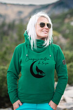 Wykonana z doskonałej jakości bawełny ciemnozielona damska bluza z kapturem i wilkiem, to bluza którą pokochasz od pierwszego założenia. Szmaragdowy idealnie podkreśla urodę i pasuje na każdą porę roku - nie tylko na jesień. Damska bluza dresowa z kapturem mięciutka i super wygodna, idealna na górskie wycieczki, jak i na spacery po mieście - to idealny pomysł na prezent dla dziewczynySama wybierasz swoją ulubioną bluzę dresową z motywem wilka. Jesteś niewymiarowa?