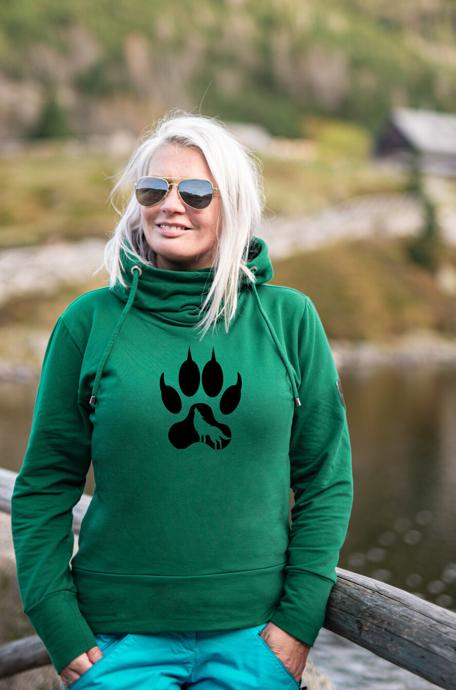 Pomysł na Prezent dla Niej - Damska Bluza z Wilkiem Bluza Dresowa z Kapturem - Wilczy ŚladPomysł na Prezent Dla Niej Szmaragdowa Bluza damska z wilkiem, Zielona Bluza Wilkiem Czarna Bluza dresowa damska z kapturem kaptur idealnie miękki i wygodny - idealnie nadaje się na prezent dla Niej - Szukasz prezentu dla Dziewczyny- nie wahaj się kup miękka i wygodną bluzę z wilkiem - Piękna Zieleń klasyczna bluza dresowa z wilkiem to idealny prezent pod choinkę dla dziewczyny