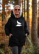 Bluza Damska z Kapturem dla miłośniczek natury - bluza damska z wilkiem - to super pomysł na praktyczny prezent dla niejPiękna i kobieca dzianinowa bluza dresowa damska w klasycznej czerni z motywem wilka- idealnie nadaje się na prezent dla miłośników życia w zgodnie z natura dla fanek chodzenia po górach