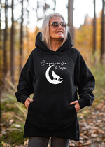 Bluza Damska z Kapturem dla miłośniczek natury - bluza damska z wilkiem - to super pomysł na praktyczny prezent dla niejPiękna i kobieca dzianinowa bluza dresowa damska w klasycznej czerni z motywem wilka- idealnie nadaje się na prezent dla miłośników życia w zgodnie z natura dla fanek chodzenia po górach