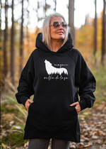 Bluza Damska z Kapturem dla miłośniczek natury - bluza damska z wilkiem - to super pomysł na praktyczny prezent dla niejPiękna i kobieca dzianinowa bluza dresowa damska w klasycznej czerni z motywem wilka- idealnie nadaje się na prezent dla miłośników życia w zgodnie z natura dla fanek chodzenia po górach