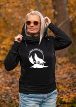 Bluza Damska z Kapturem dla miłośników Lasów i natury  -czarna Bluza z motywem Wilka  - dla fanek chodzenia po górach to  idealny pomysł na prezent dla miłośniczek spacerów po lasach albo Bluza  jako praktyczny prezent dla fanek natury