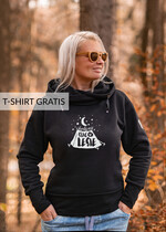 Wykonana z doskonałej jakości bawełny czarna damska bluza z kapturem i lasem , to bluza którą pokochasz od pierwszego założenia. Czerń idealnie podkreśla urodę i pasuje na każdą porę roku - nie tylko na jesień. Damska bluza dresowa z kapturem mięciutka i super wygodna, idealna na górskie wycieczki