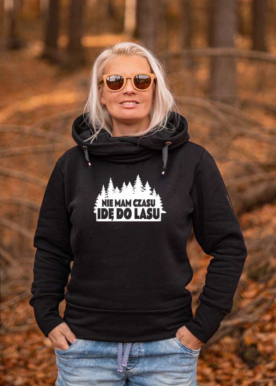 Pomysł Na Prezent dla Niej - Bluza dresowa Damska z Kapturem - nie mam czasu ide do lasu - Czarna bluza damska