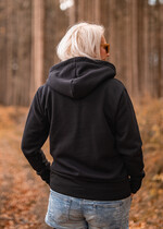 Piękna i kobieca dzianinowa bluza dresowa damska w klasycznej czerni idę do lasu- idealnie nadaje się na prezent dla miłośników życia w zgodnie z natura dla fanek chodzenia po górach i lasach