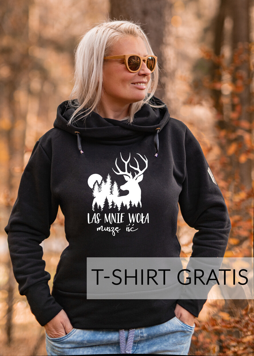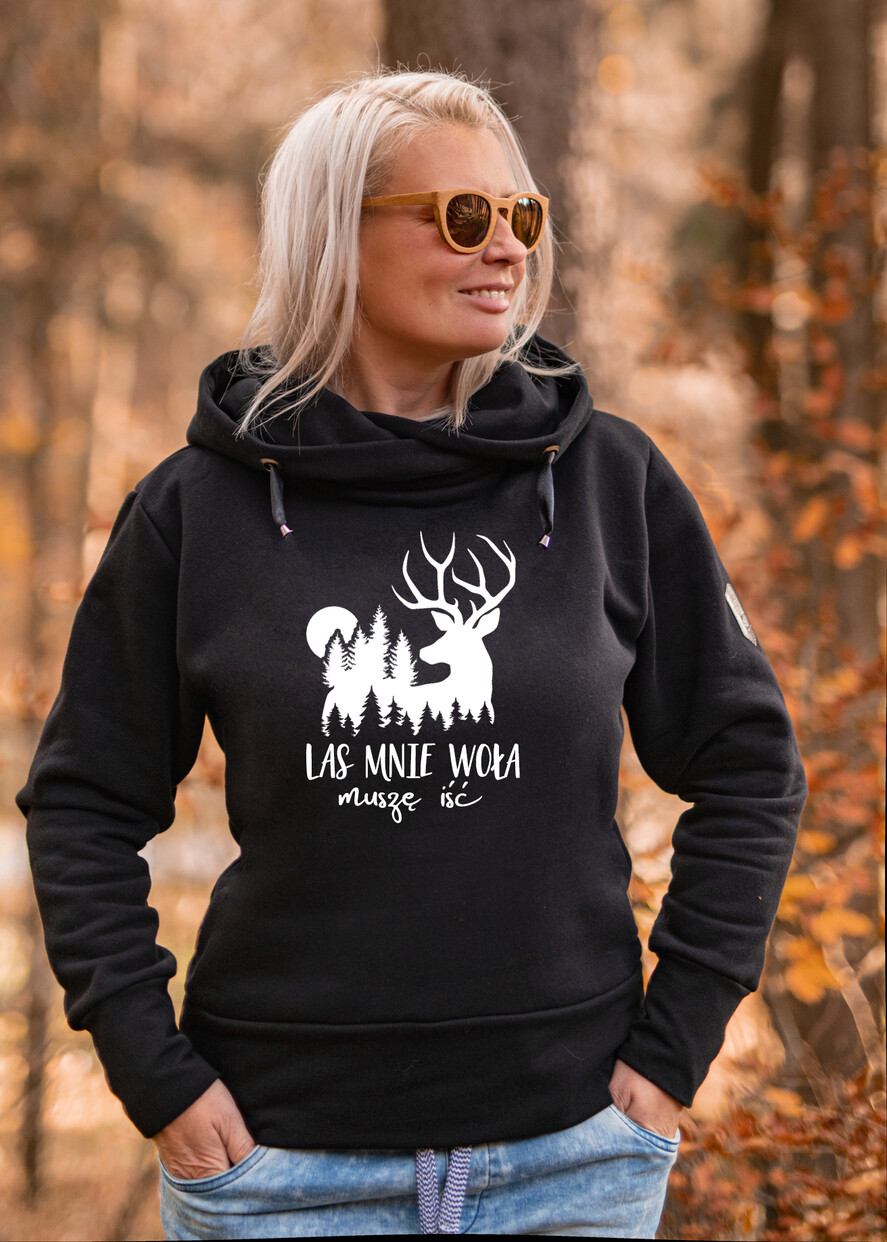 Pomysł Na Prezent dla Niej - Bluza dresowa Damska z Kapturem - Las mnie woła - Damska Czarna bluza