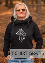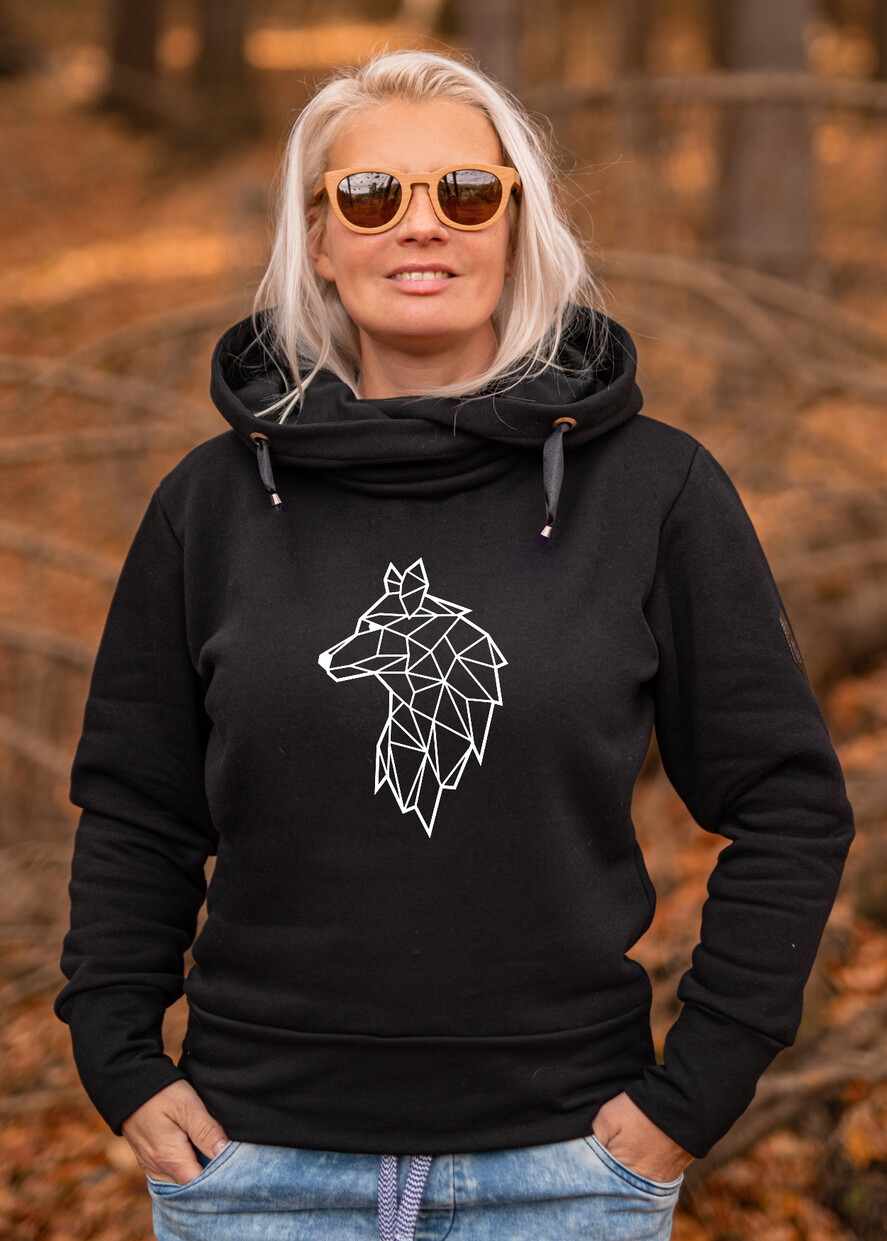 Pomysł Na Prezent dla Niej - Bluza dresowa Damska z Kapturem - geometryczny lis - Damska Czarna bluza