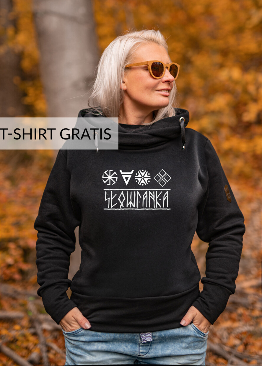 Pomysł Na Prezent dla Niej - Bluza dresowa Damska z Kapturem - Słowianka - Damska Czarna bluza Stara Wiara Wraca