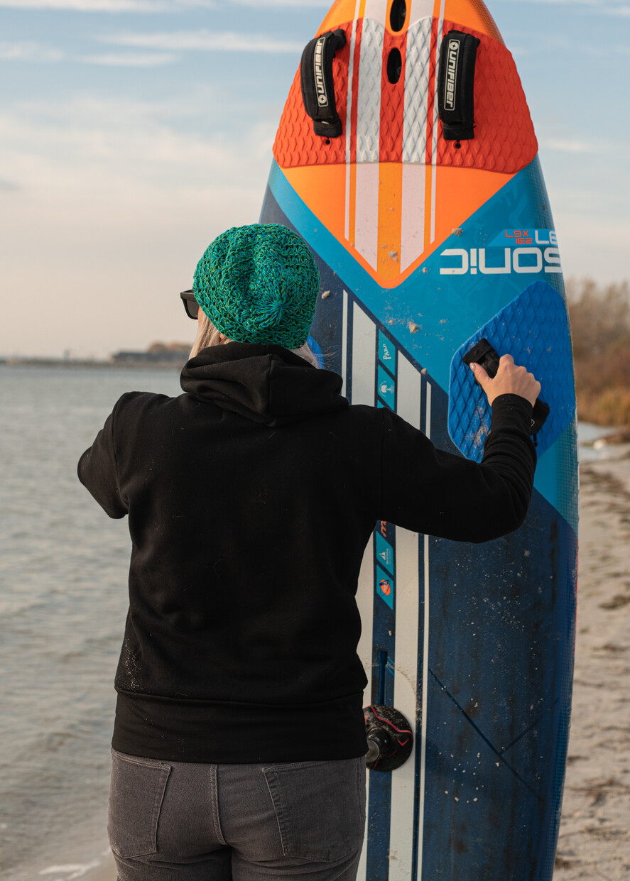 Czarna damska bluza dla miłośników windsurfingu i nie tylko - bluza z kapturem czarna to must have na nadchodzącą porę roku!