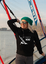 Czarna bluza damska z kapturem dla fanki windsurfingu - pomysł na prezent dla niej - damska bluza z nadrukiem windsurfing all I need is wind