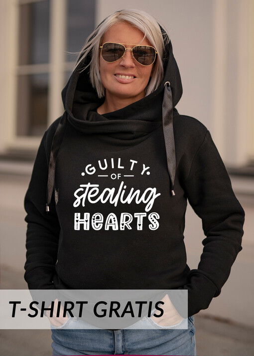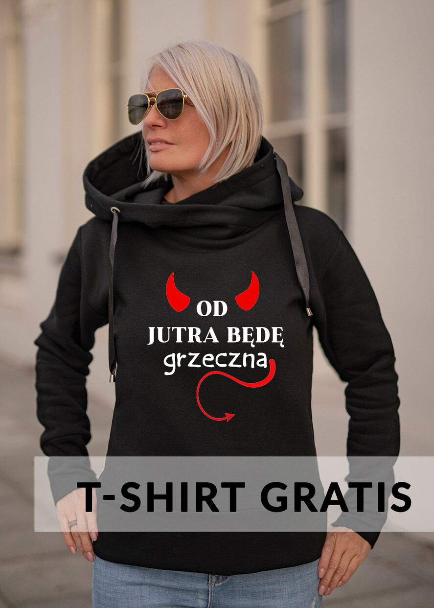 Pomysł na prezent dla Przyjaciółki Ciepła Damska bluza z Kapturem ma w zestawie koszulkę tshirt - kupując masz komplet. Do Tej Pięknej bluzy damskiej z kapturem - dołączamy T-shirt w Prezencie