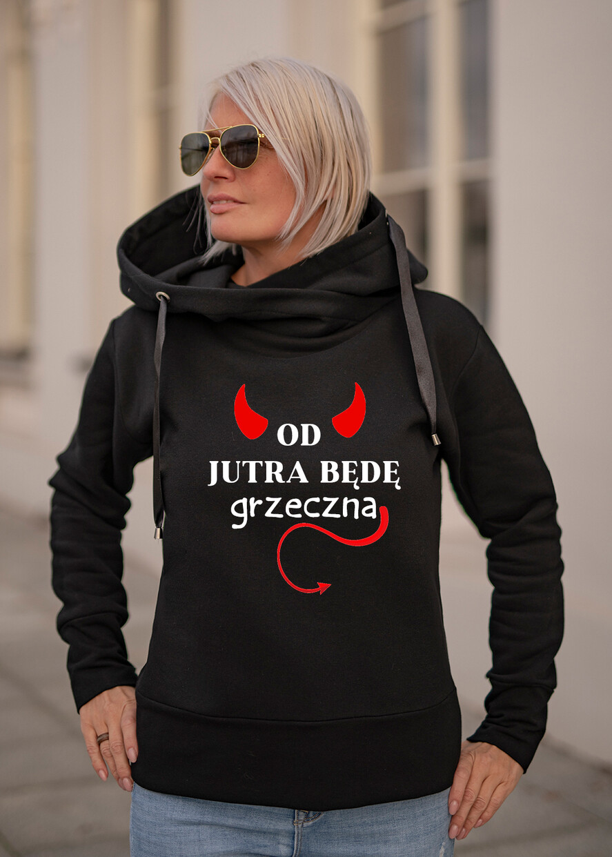 Wykonana z doskonałej jakości bawełny czarna damska bluza to pomysł na prezent dla mamy lub córki , to bluza którą pokochasz od pierwszego założenia. Czerń idealnie podkreśla urodę i pasuje na każdą porę roku - nie tylko na jesień. Damska bluza dresowa z kapturem mięciutka i super wygodna, idealna na wycieczki na spacery jak i na siedzenie pod kocykiem.Sama wybierasz swoją ulubioną bluzę dresową damską. Jesteś niewymiarowa?