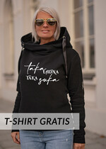 Koszulka Damska w tym samym rozmiarze co zakupiona Bluza Damska z Kapturem- Gratis Koszulka czarna damska jest Dla Ciebie w prezencieBluza Damska z Kapturem będzie super trafionym prezentem dla niej - jeśli szukasz gotowego zestawu prezentowego zobacz nasze propozycje zestawów prezentowych, znajdziesz tam komplety bluza dresowa damska plus koszulka i dodatki w postaci czekoladek czy krówek. Możesz też zakupić komplet bluza i kubek pięknie zapakowane i gotowe do wręczeniaPiękna i kobieca dzianinowa bluza dresowa damska w klasycznej czerni- idealnie nadaje się na prezent dla dziewczyny