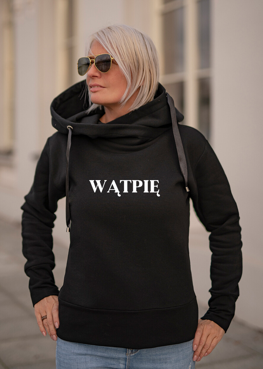 Pomysł na Prezent dla Niej Damska Bluza Dresowa śmieszne Napisy Czarna Bluza Dresowa z Napisem Wątpię Upominek dla Dziewczyny