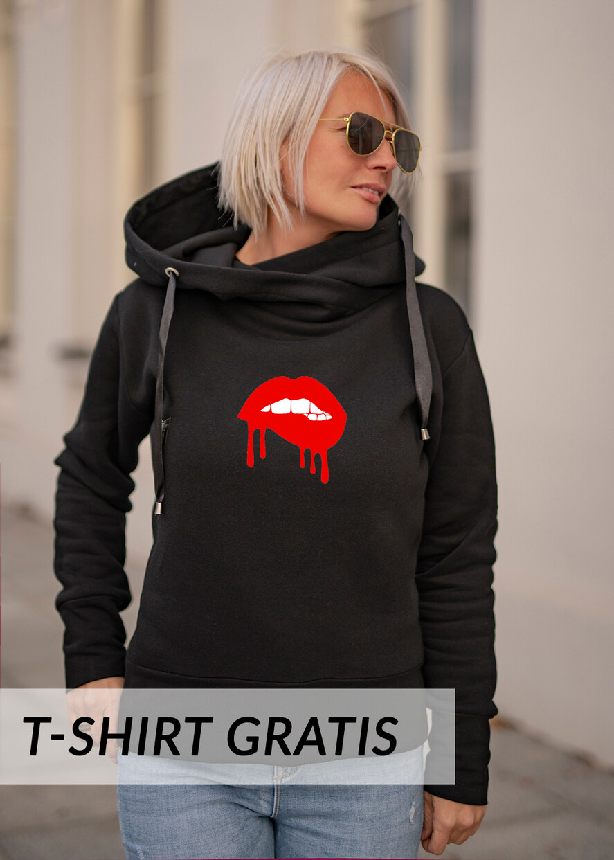 Pomysł na prezent dla Przyjaciółki Ciepła Damska bluza z Kapturem ma w zestawie koszulkę tshirt - kupując masz komplet. Do Tej Pięknej bluzy damskiej z kapturem - dołączamy T-shirt w Prezencie
