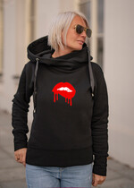 Pomysł na Prezent dla Niej Damska Bluza Dresowa śmieszne Napisy Czarna Bluza Dresowa z Napisem Usta Upominek dla Dziewczyny