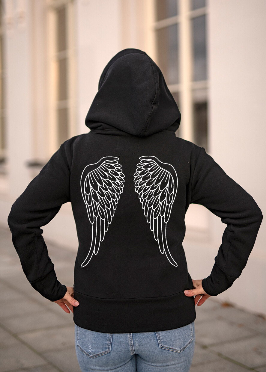 Pomysł na Prezent dla Niej Damska Bluza Dresowa śmieszne Napisy Czarna Bluza Dresowa z Napisem Anioł Niebo Skrzydla Upominek dla Dziewczyny