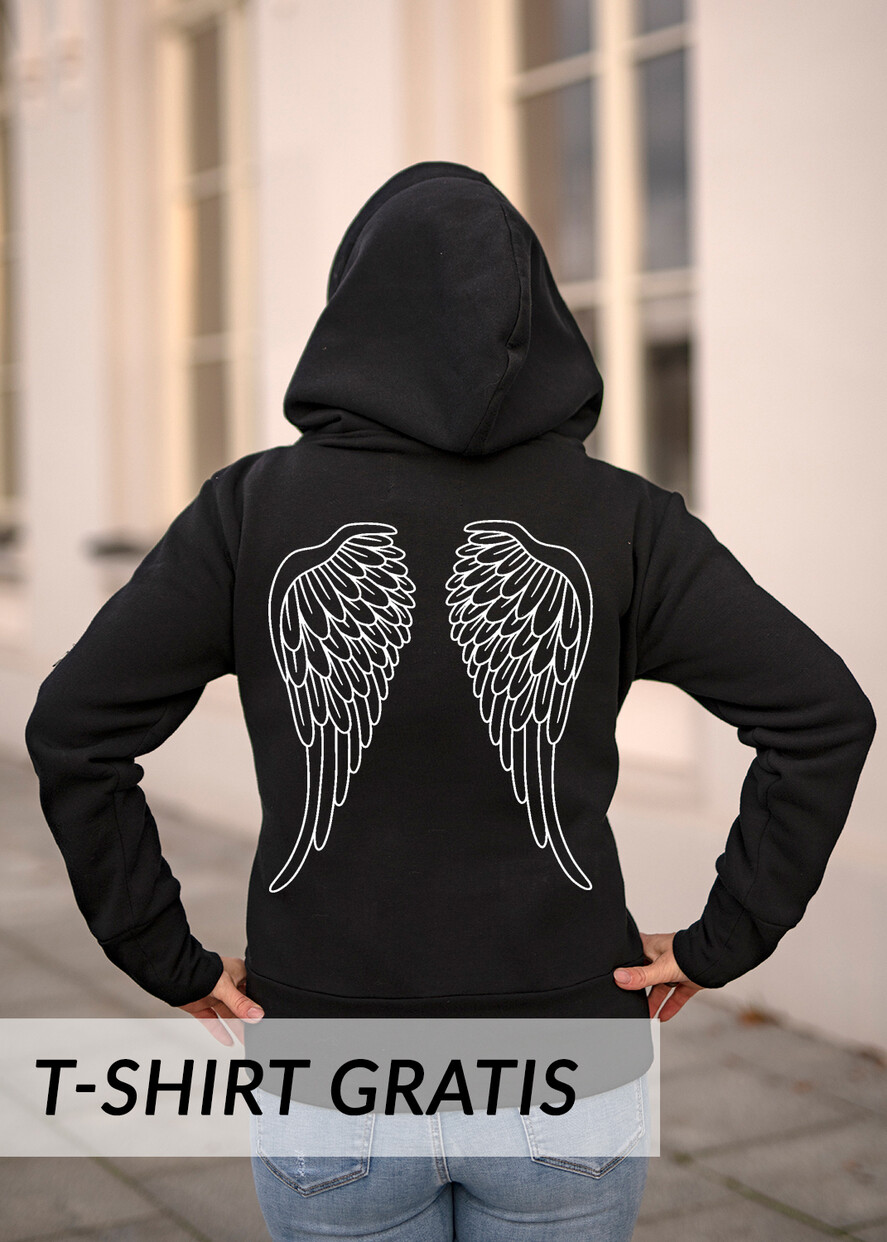 Pomysł na prezent dla Przyjaciółki Ciepła Damska bluza z Kapturem ma w zestawie koszulkę tshirt - kupując masz komplet. Do Tej Pięknej bluzy damskiej z kapturem - dołączamy T-shirt w Prezencie