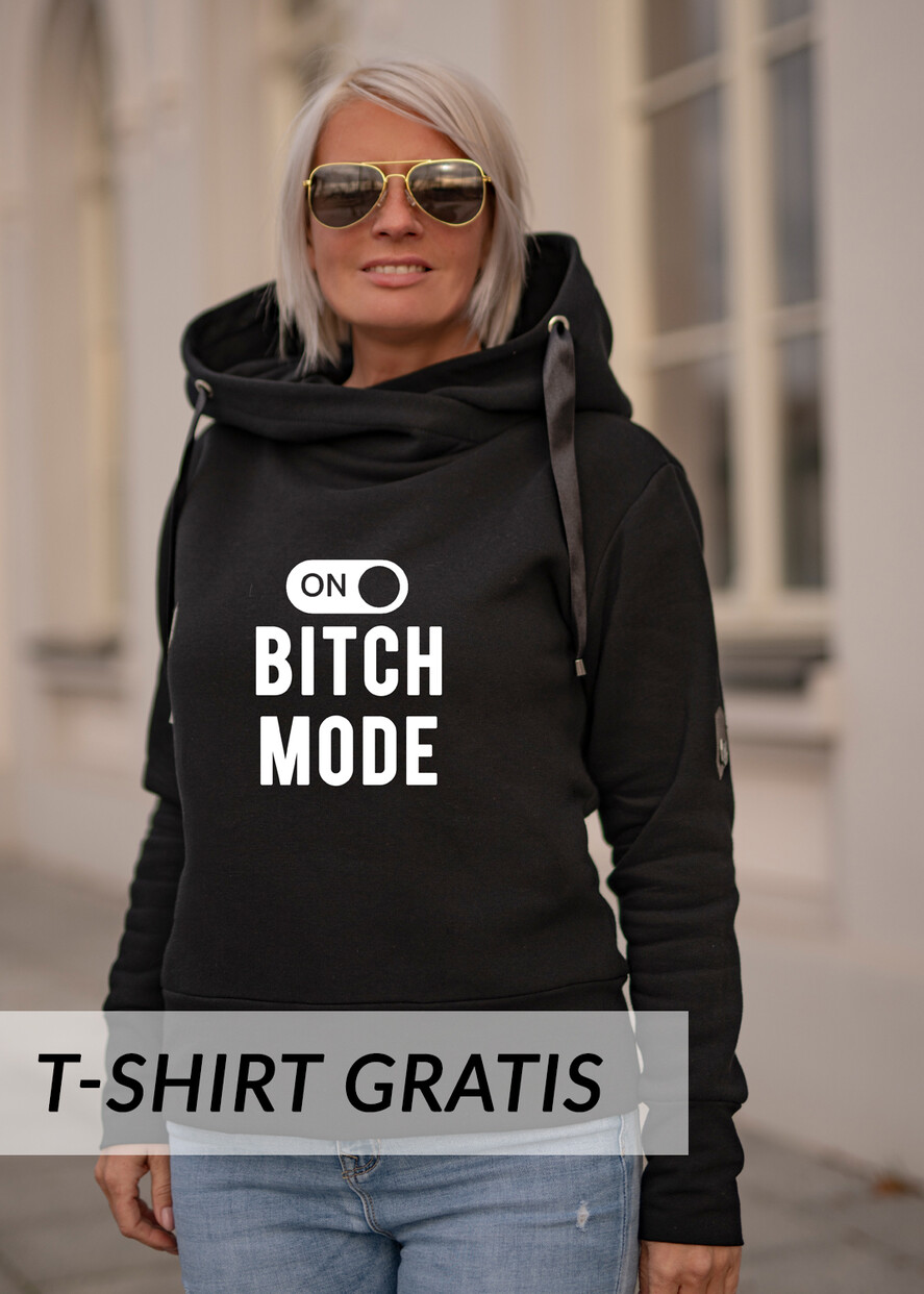 Pomysł na Prezent dla Dziewczyny Damska Bluza Dresowa śmieszne Napisy Czarna Bluza Dresowa z Napisem Bitch mode Upominek dla Niej