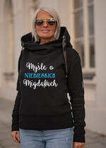 Pomysł na Prezent dla Dziewczyny Damska Bluza Dresowa śmieszne Napisy Czarna Bluza Dresowa z Napisem Upominek dla Dziewczyny Myslę o niebieskich Migdałach