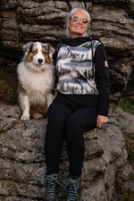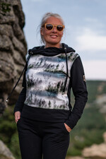 Czarny komplet dresowy Las i geometryczne zwierzęta, komplet dresowy damski bluza z kapturem Las