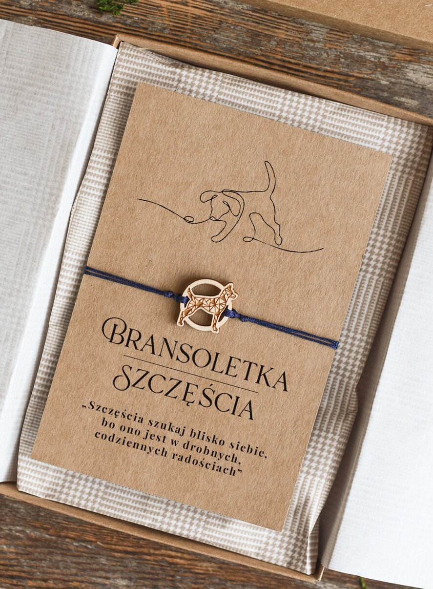 Upominek dla Dziewczyny Bransoletka drewniana z psem Super Pomysłna Prezent dla niej Drewniana Bransoletka