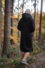 Czarna Sukienka Sportowa Kangurka i wielkim kapturem Dzianinowa Wygodna Sukienka z wielkiem
