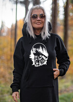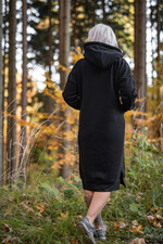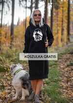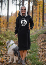 Czarna Sukienka Sportowa Kangurka z wielkim Kapturem Sukienka Ciągnie wilka do lasu - Sukienka Czarna z wilkiem