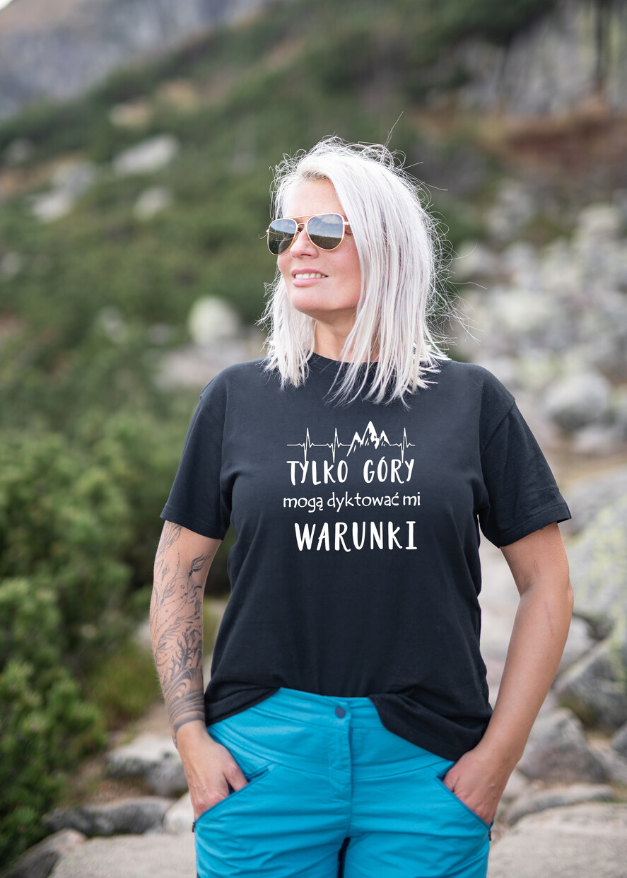 Koszulka T-shirt Damska tylko góry mogą mi dyktować warunki - dla fanek chodzenia po górach Czarny T-Shirt dla miłośniczek Gór