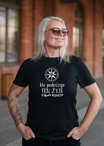 Pomysł na Prezent dla Niej - Czarna Koszulka Damska Dla fanek Podróży - T-shirt dla Podróżniczek Kompas