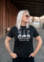 Koszulka Damska T-shirt dla miłośniczek kotów - damska bluza z kocie sprawy - to super pomysł na praktyczny prezent dla niejPiękna i kobieca dzianinowa Koszulka Damska damska w klasycznej czerni - idealnie nadaje się na prezent dla miłośniczek kociej natury