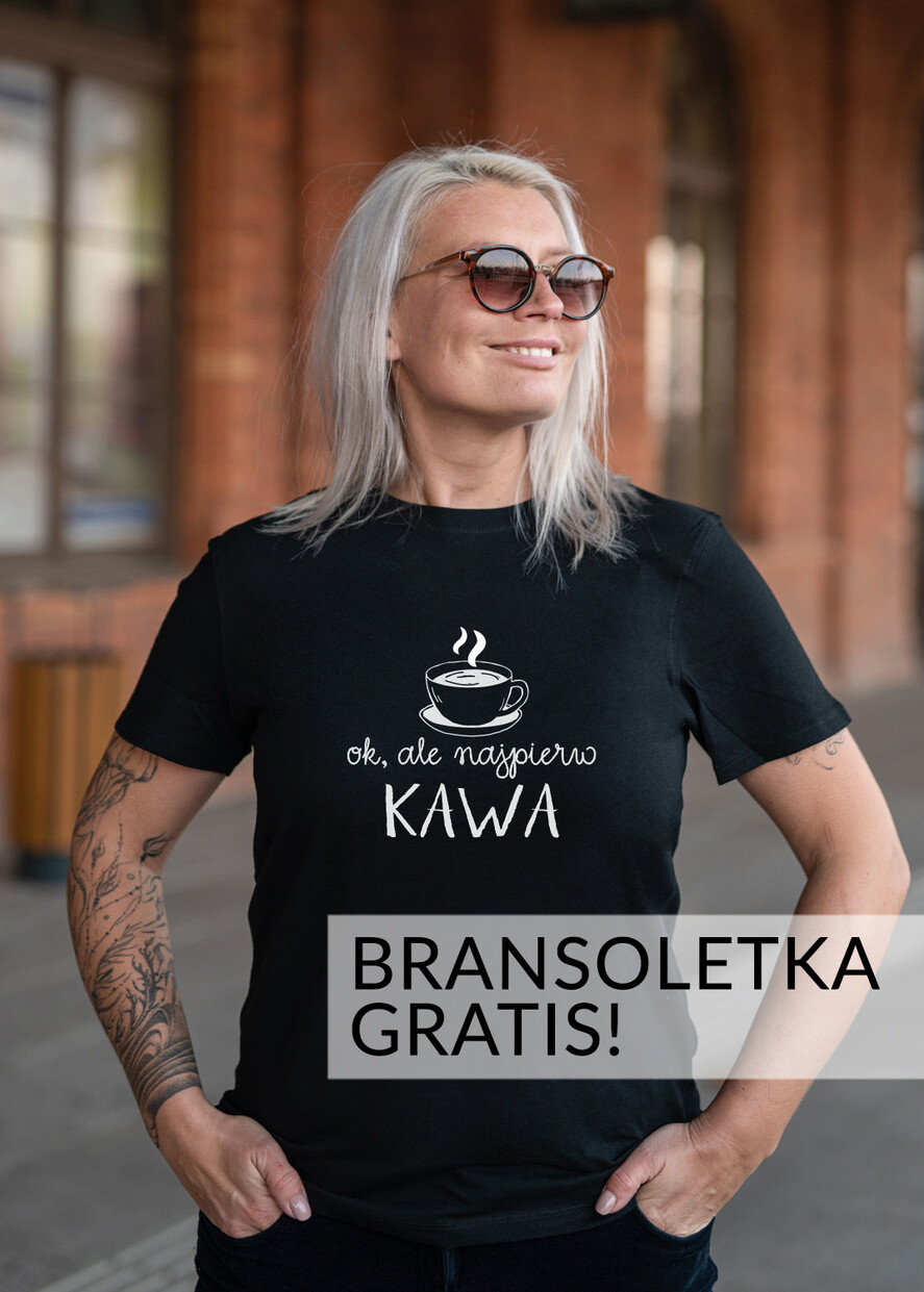Pomysł Na Prezent dla Niej Koszulka Damska z motywem kawy T-Shirt Damski z napisem to idealny prezent dla mamy