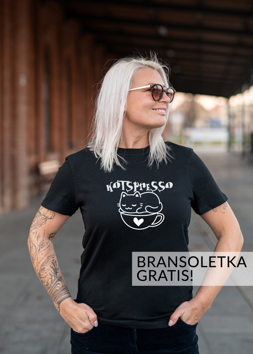 Pomysł na Prezent dla Niej - Koszulka Damska Czarna - T-Shirt Dasmki 100 % Bawełna