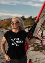 Pomysl na Prezent dla Windsurferki Koszulka Damska TShirt z napisem Damska Koszulka Czarna T-Shirt Windsurfing wiatr we włosach