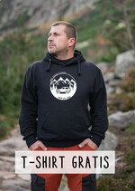 Taka Klasyczna Bluza w czarnym kolorze z kapturem to idealny pomysł na prezent dla miłośnika górDo Tej wygodnej bluzy męskiej z kapturem - dołączamy Tshirt z górskim rytmem serca