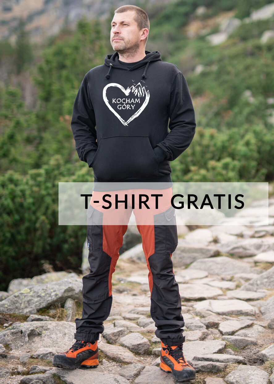 Taka Klasyczna Bluza w czarnym kolorze z kapturem to idealny pomysł na prezent dla miłośnika górDo Tej wygodnej bluzy męskiej z kapturem - dołączamy Tshirt z górskim rytmem serca