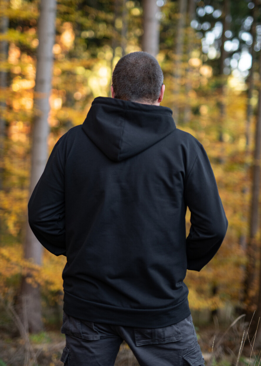 Taka Klasyczna Bluza w czarnym kolorze z kapturem to idealny pomysł na prezent dla miłośnika  górskich wycieczek - trekingu-  spacerów po lesie - leśników