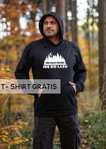 Taka Klasyczna Bluza w czarnym kolorze z kapturem to idealny pomysł na prezent dla miłośnika górskich wycieczek - trekingu- spacerów po lesie - leśnikówDo Tej wygodnej bluzy męskiej z kapturem - dołączamy Tshirt