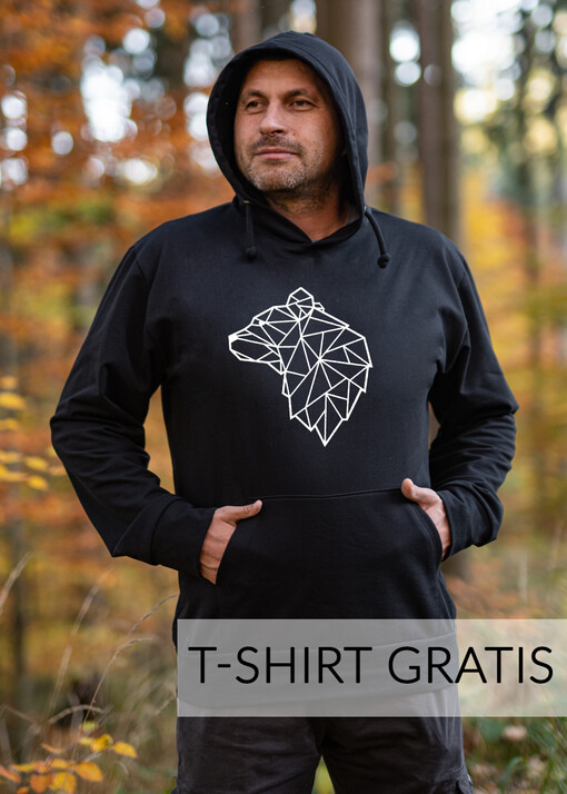 Taka Klasyczna Bluza w czarnym kolorze z kapturem to idealny pomysł na prezent dla miłośnika górskich wycieczek - trekingu- spacerów po lesie - leśnikówDo Tej wygodnej bluzy męskiej z kapturem - dołączamy Tshirt