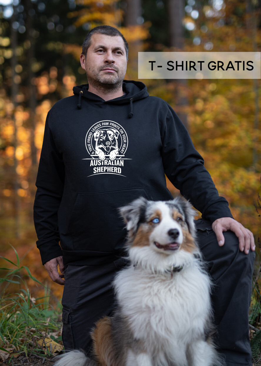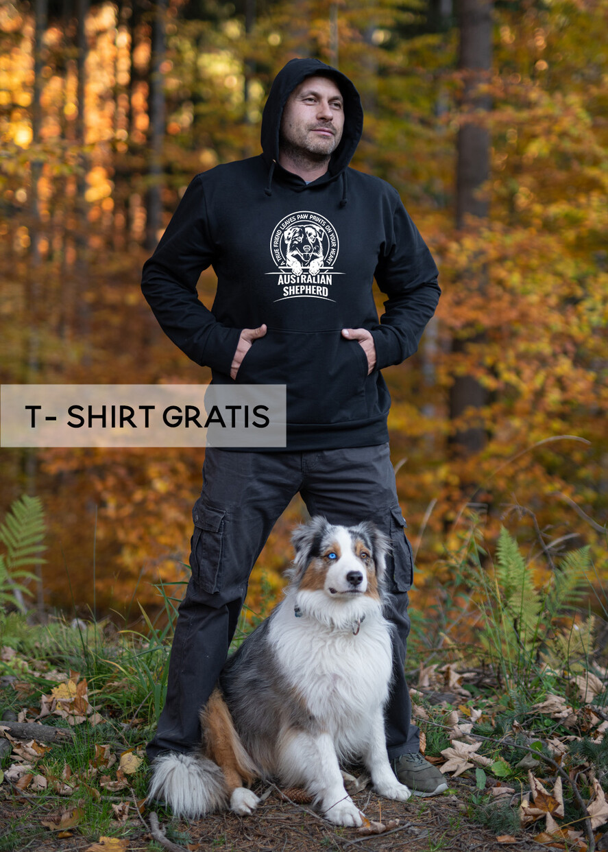 Taka Klasyczna Bluza w czarnym kolorze z kapturem to idealny pomysł na prezent dla miłośnika spacerów z psem - hodowcy- trenera - behawiorystyDo Tej wygodnej bluzy męskiej z kapturem - dołączamy Tshirt z psim rytmem serca