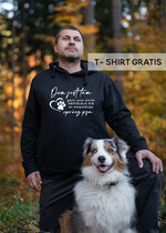 Taka Klasyczna Bluza w czarnym kolorze z kapturem to idealny pomysł na prezent dla miłośnika spacerów z psem - hodowcy- trenera - behawiorystyDo Tej wygodnej bluzy męskiej z kapturem - dołączamy Tshirt z psim rytmem serca