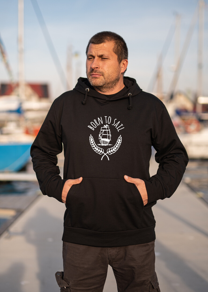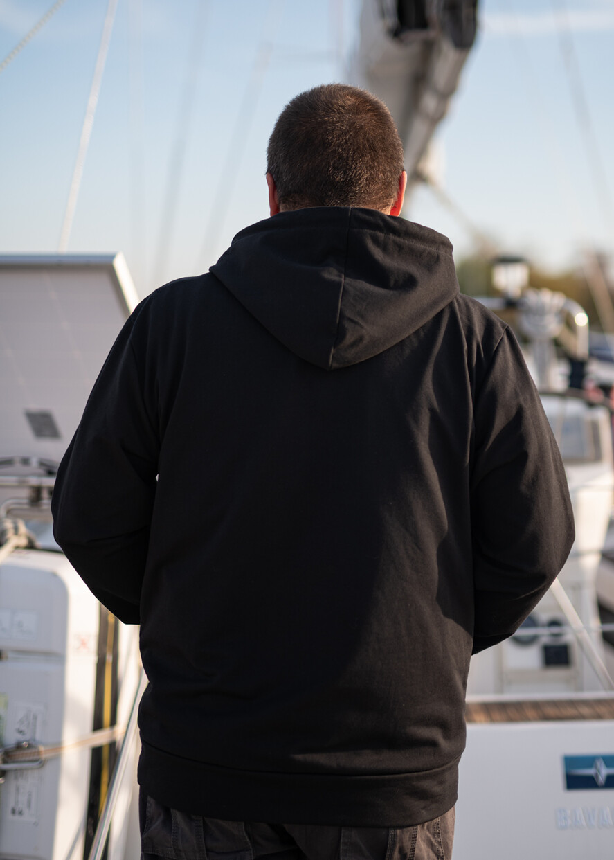 Czarna męska bluza dla miłośników żeglarstwa i nie tylko - bluza z kapturem i kieszonką czarna to must have na nadchodzącą porę roku!