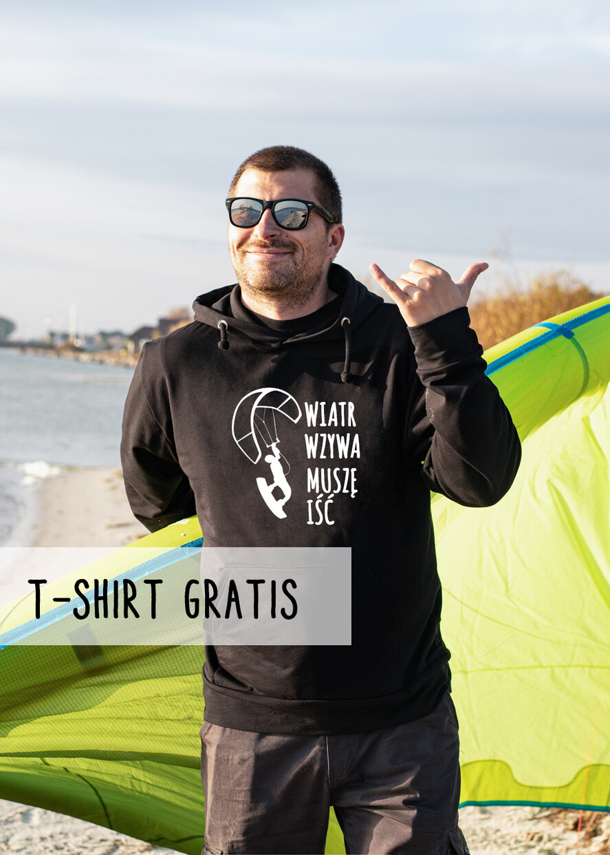 Świetnie trafiłeś - mamy dla ciebie znakomitą Bluzę dresową męską taką jaka nam się już od dawna marzyła - Kitesurfing jest tematem przewodnim - możesz nosić tę bluzę dresową męską nie tylko na helu - Czarna męska bluza z motywem kitesurfingu doskonale nada się na codzień - miło będzie ci się wpominało sesyjki na helu !