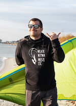 Czarna bluza z kapturem męska z napisem -kitesurfingowym